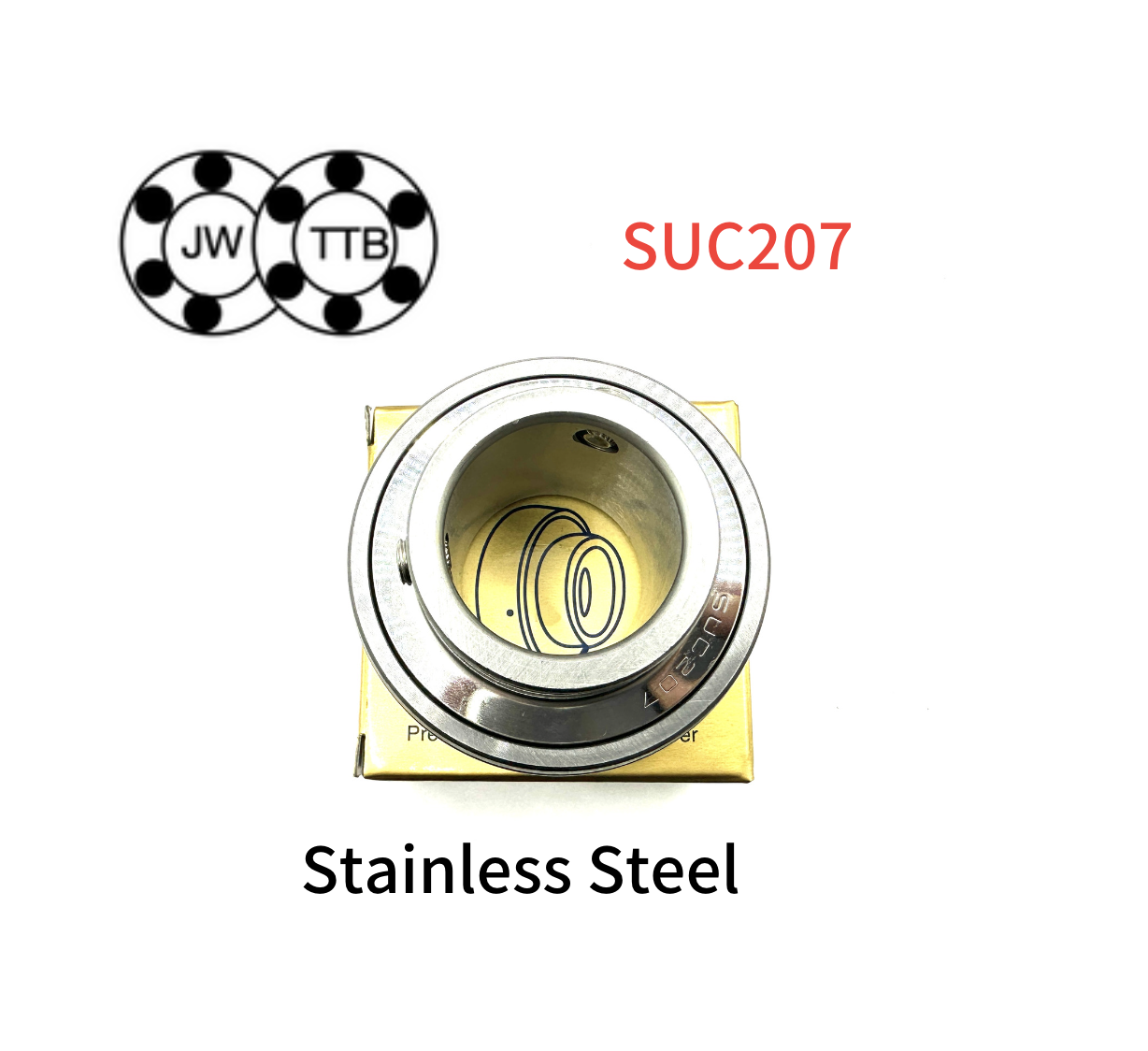 SUC207 is a standard metric model in the "Stainless Steel Outer Spherical Ball Bearing" series (with variants such as SUC207-20, -21, -22 corresponding to imperial shaft diameters). Its core task is to directly replace ordinary bearing steel UC207 in humid, salt spray, chemical cleaning, or food grade flushing environments, achieving corrosion-resistant, washable, and maintenance free seat installation.